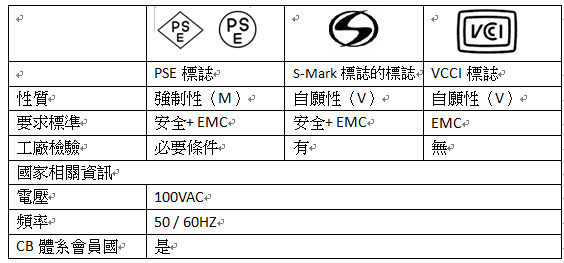凡屬於“特定電氣用品”目錄內的產品,進入日本市場,必須通過日本經濟產業省授權的第三方驗證機構驗證,取得驗證合格證書,並在標籤上有菱形的PSE標誌。在『非特定電氣用品』部分;屬於圓形PSE的範圍內,廠商可自行提供測試與檢查報告,進行自我宣告後,始能進入日本市場合法銷售。